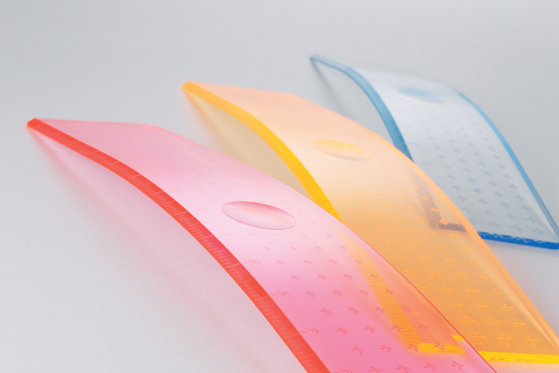 少し曲げることで取りやすく押さえやすくなる定規。アイデアで生活を少しだけ便利に。Good Design賞受賞。